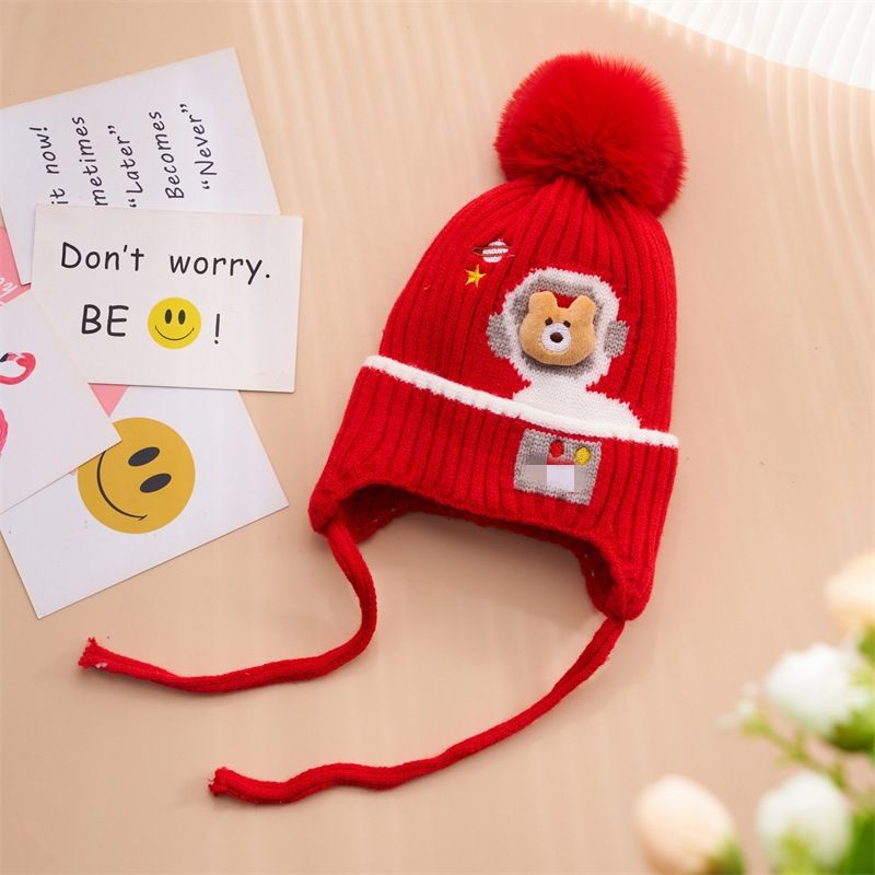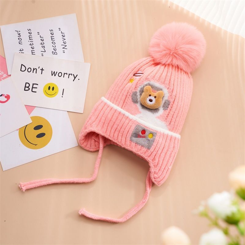YUKE宝宝护耳帽子秋冬季 婴幼儿毛线帽男女保暖针织帽沙滩遮阳帽