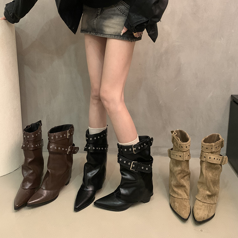 小众设计短靴西部靴 管靴短筒靴女靴2025早秋新款 美式 辣妹皮带扣裤