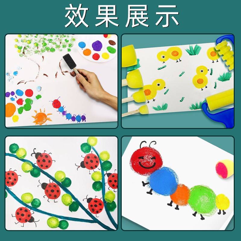 儿童画画海绵印章画刷幼儿园美术蘑菇滚轮海绵棒拓印涂鸦颜料工具