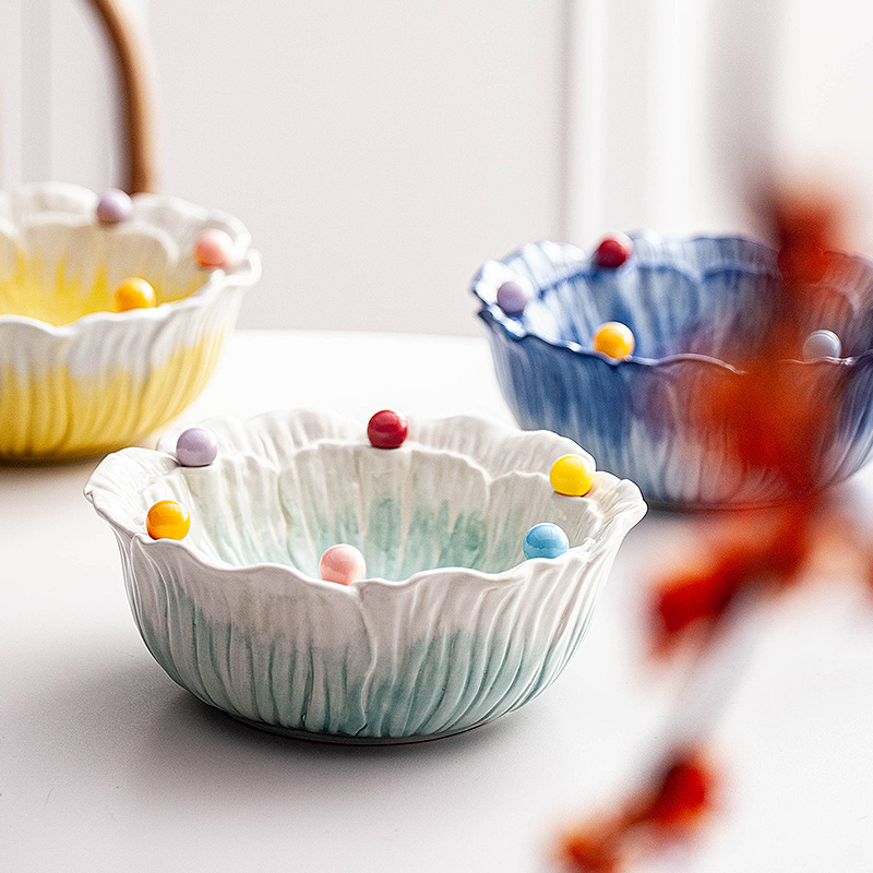 创意果盘家用带果叉陶瓷水果盘高颜值客厅茶几桌面收纳零食干果盘