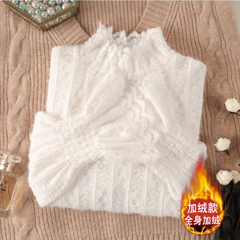 1007k 上衣女半高领感镂空气质喇叭袖 秋冬打底内搭2025新款 蕾丝衫
