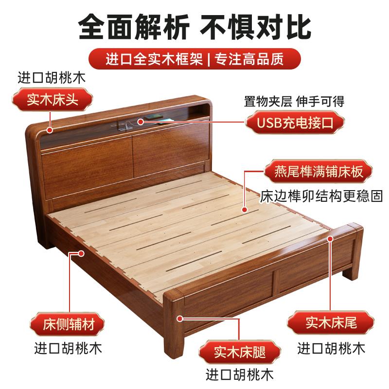 中式 榫卯床胡桃木加厚全实木床工厂直销1.8米双人床1.5米主卧婚床