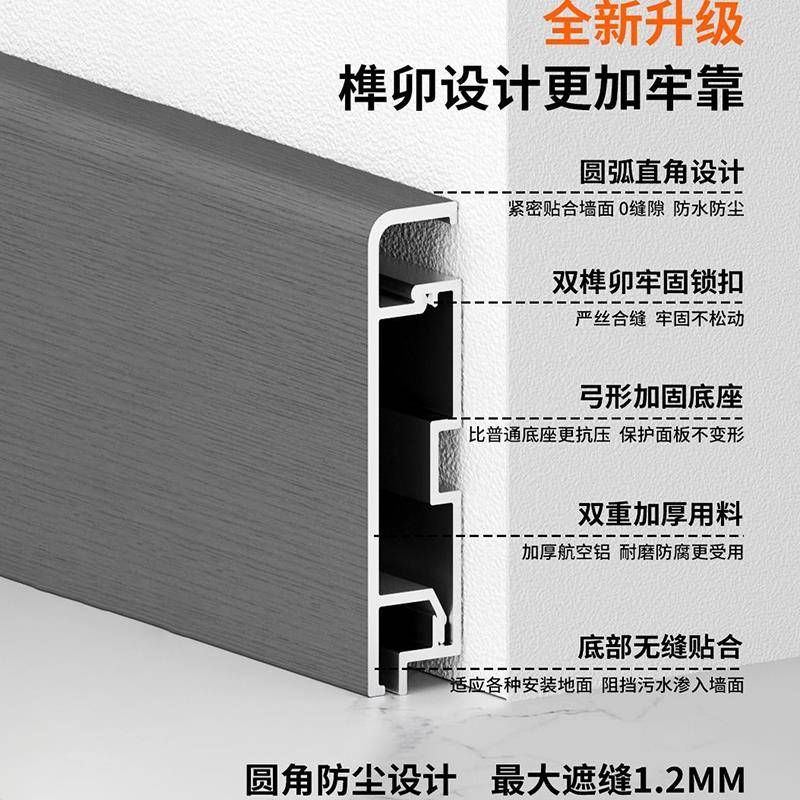 新款 线5cm极窄防水不锈钢踢脚 实木纹铝合金踢脚板加厚金属贴脚线