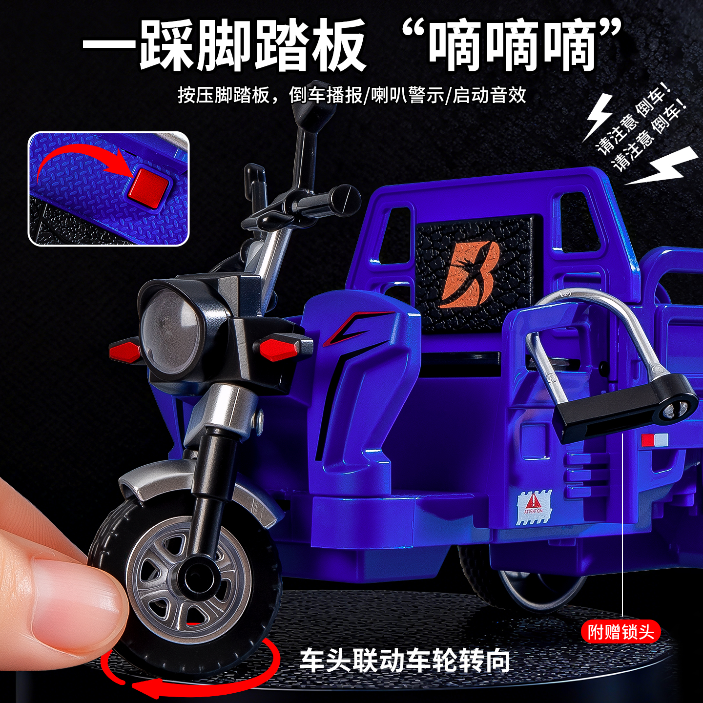 合金三轮车玩具儿童声光回力小汽车玩具男孩3到6岁仿真三蹦子新款