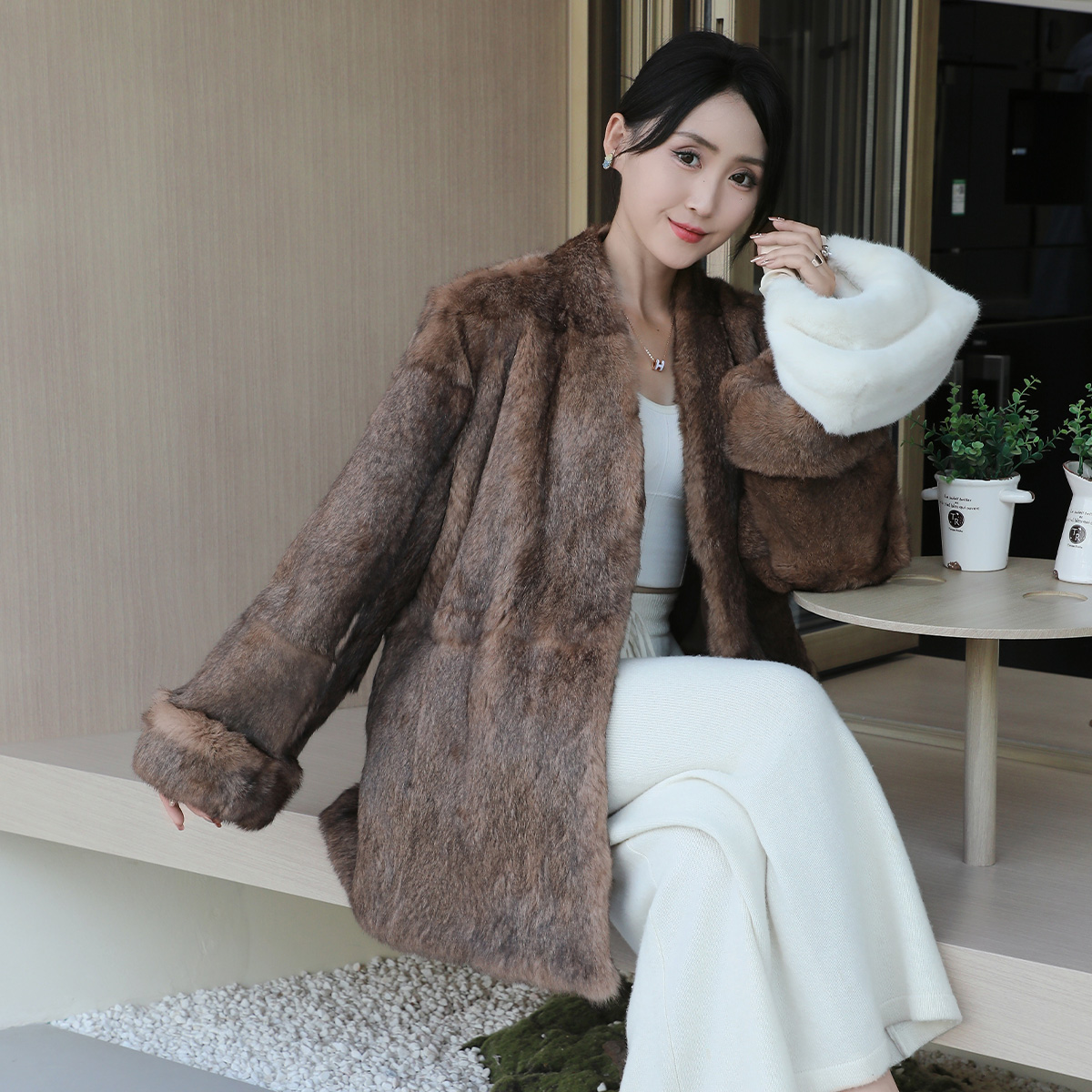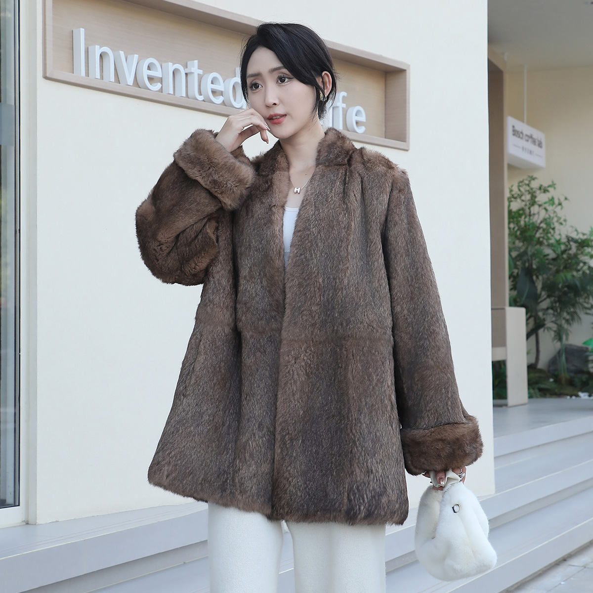 真獭兔毛皮草大衣女2025冬新款 两面穿一体派克服外套 宽松保暖时尚