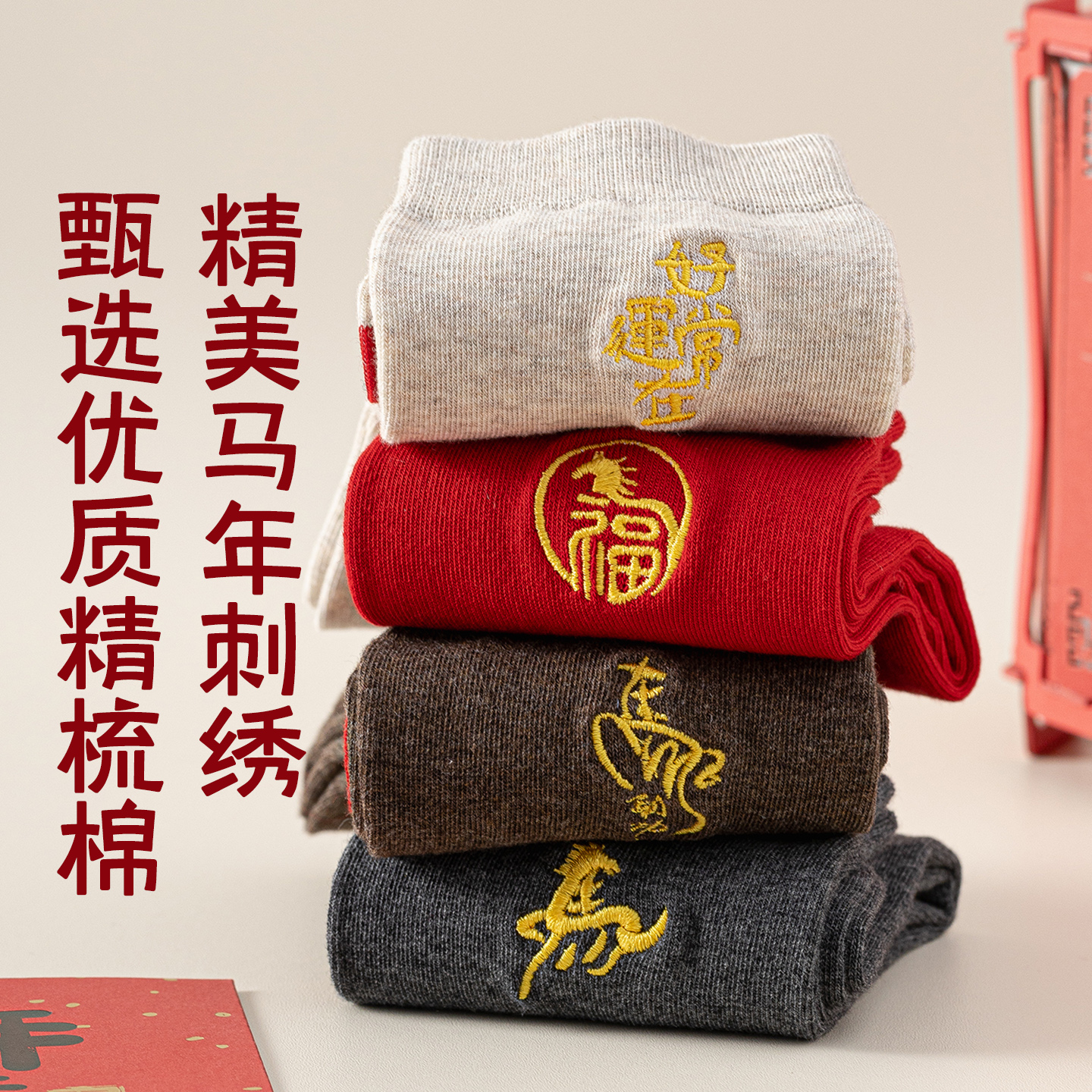 马年本命年袜子男大红色中筒袜秋冬季 属马结婚情侣新年礼物礼盒装