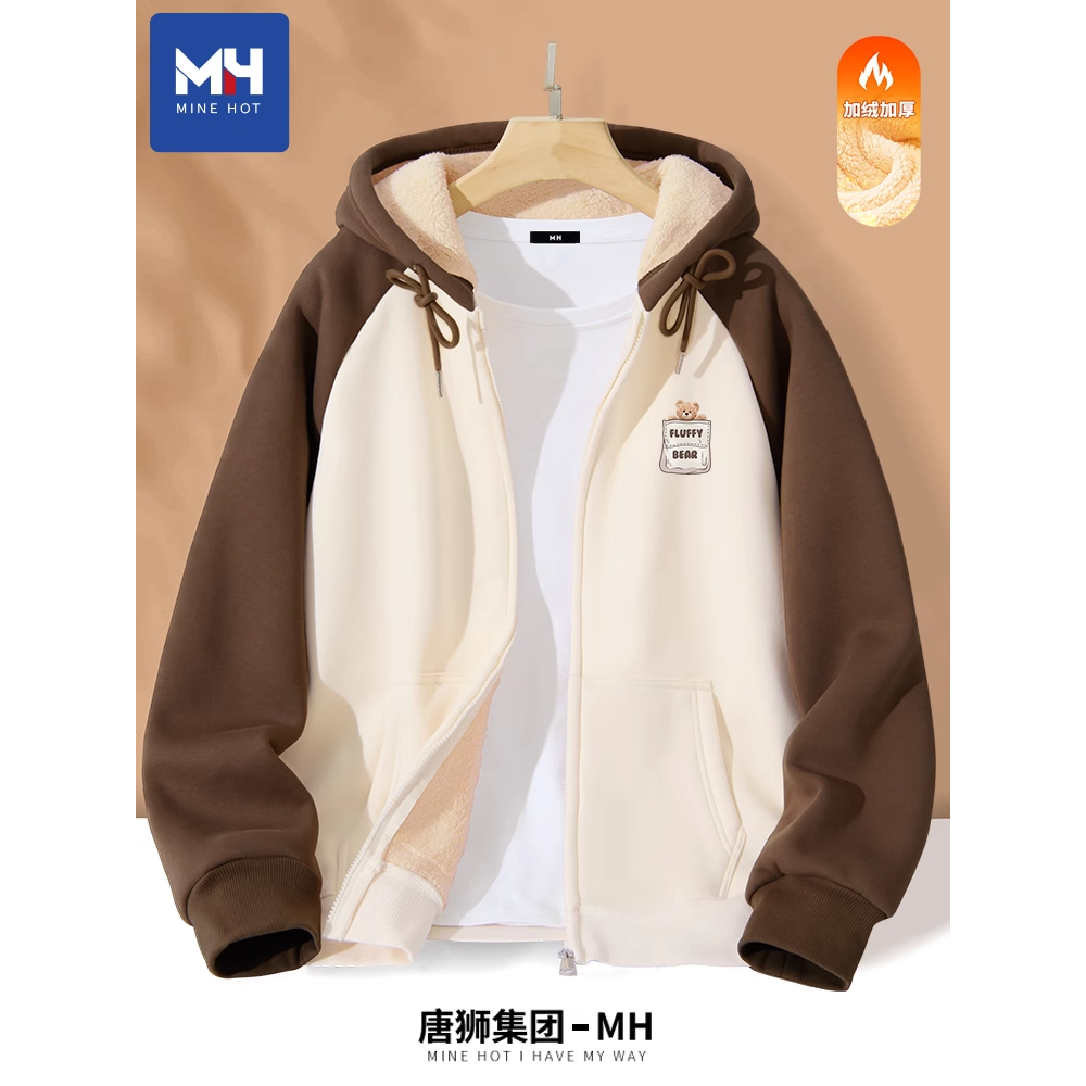 唐狮集团MH羊羔绒外套女秋冬2025新款 胖mm上衣加厚连帽卫衣女 大码