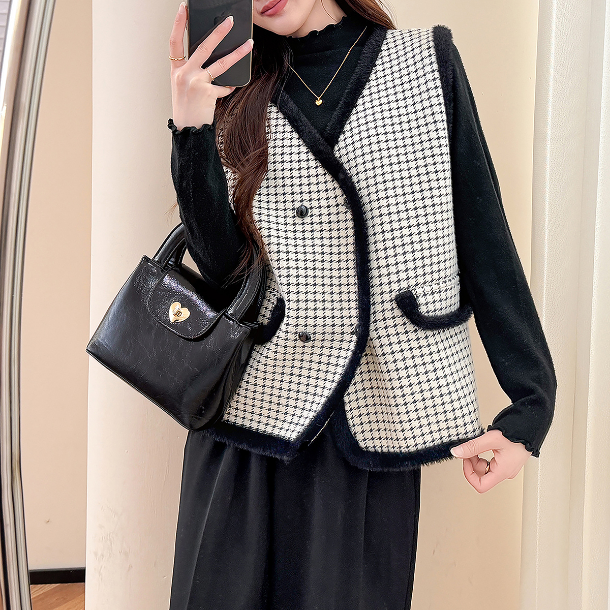 显瘦中领针织衫 半高领无袖 内搭坎肩修身 灰色西装 背心女羊毛打底衫