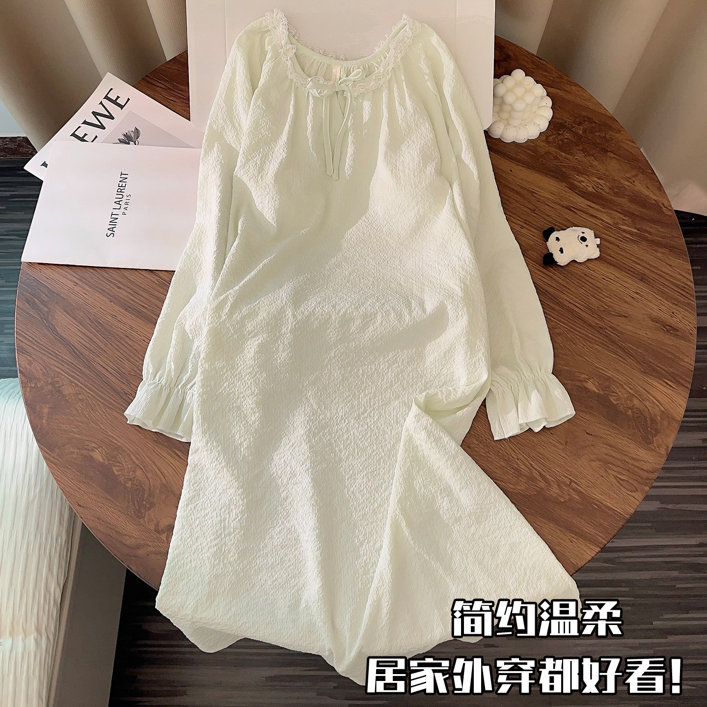 幸棉法式 睡裙女秋超仙睡衣家居服露背高级感连衣裙宽松长裙子 长袖