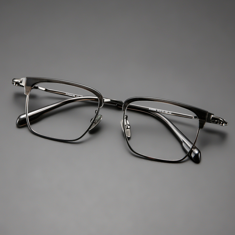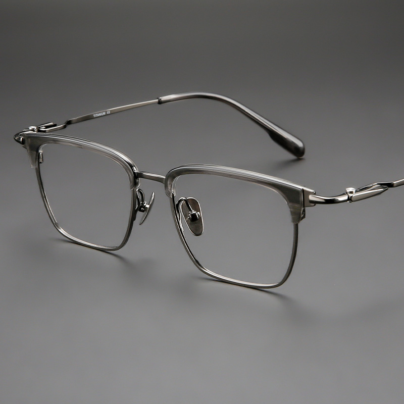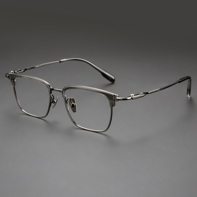 超轻纯钛半框近视眼镜框男款 网上可配度数镜片防蓝光变色眼睛镜架