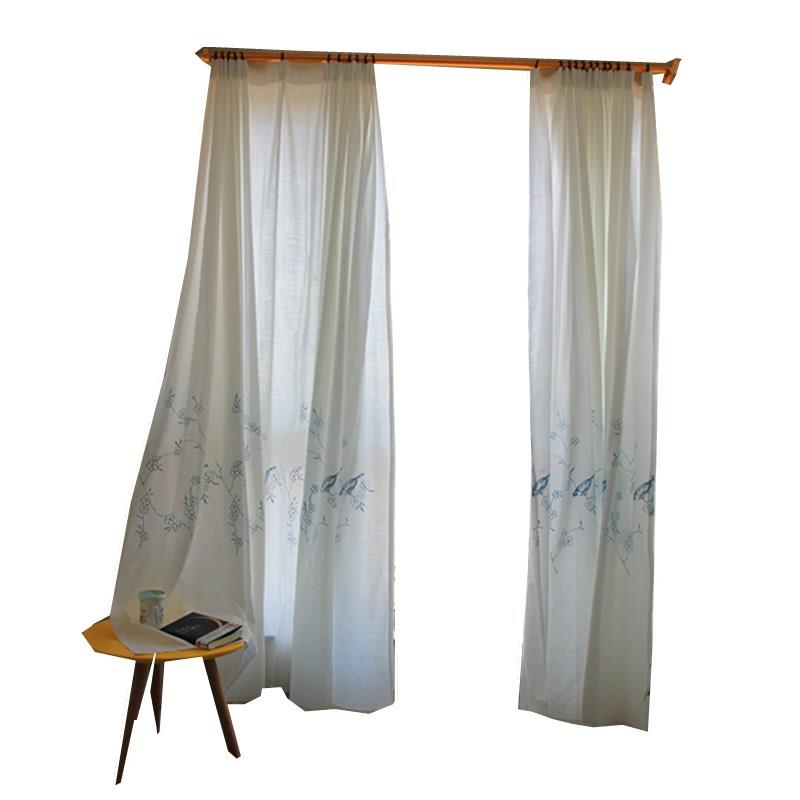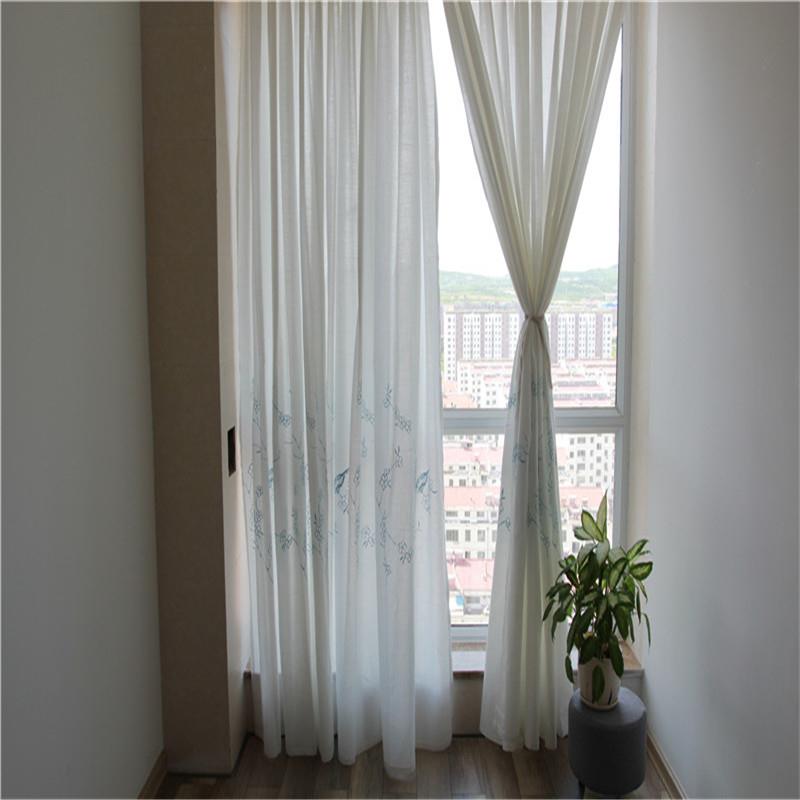 外贸 窗帘成品白色绣花简约现代透光不透人北欧风卧室阳台隔断