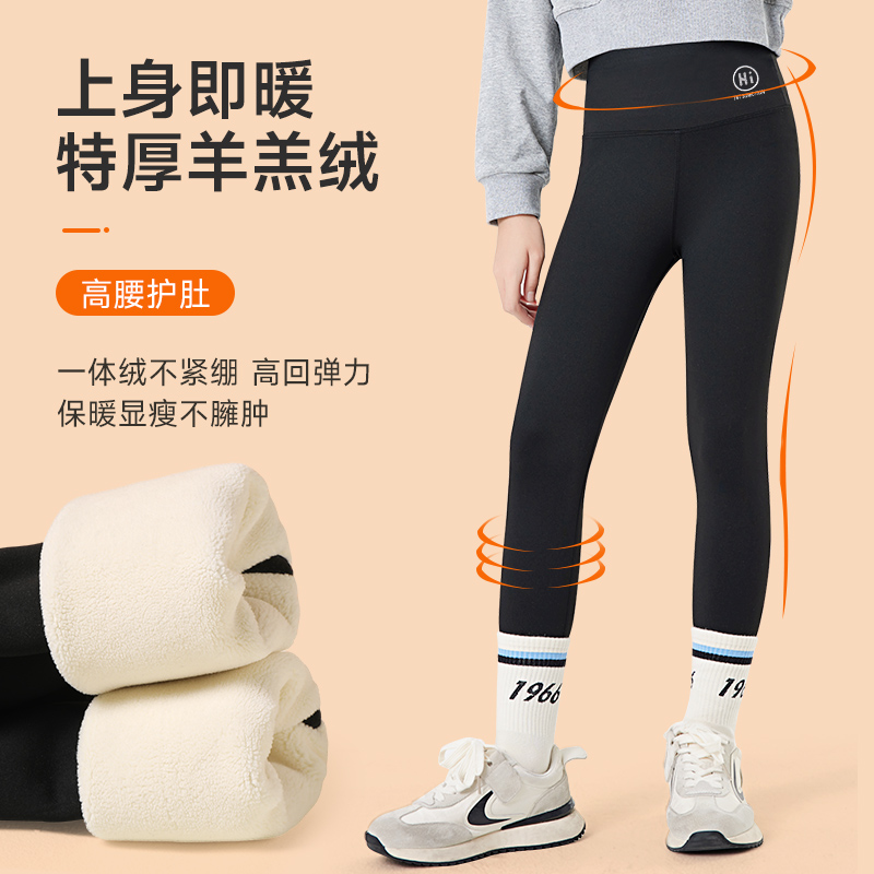 中大童加绒加厚保暖裤 儿童黑色外穿瑜伽打底裤 子 鲨鱼裤 女童秋冬季