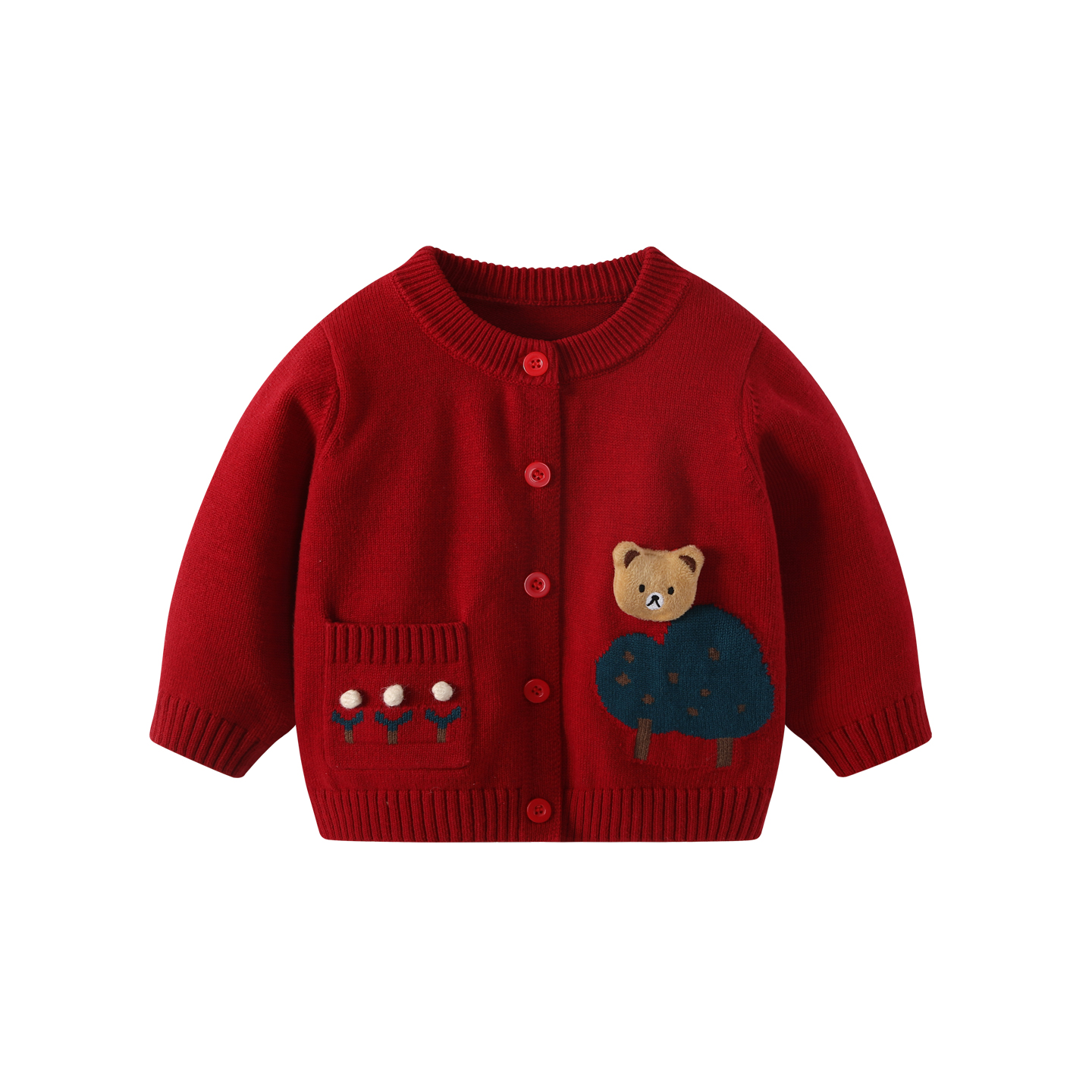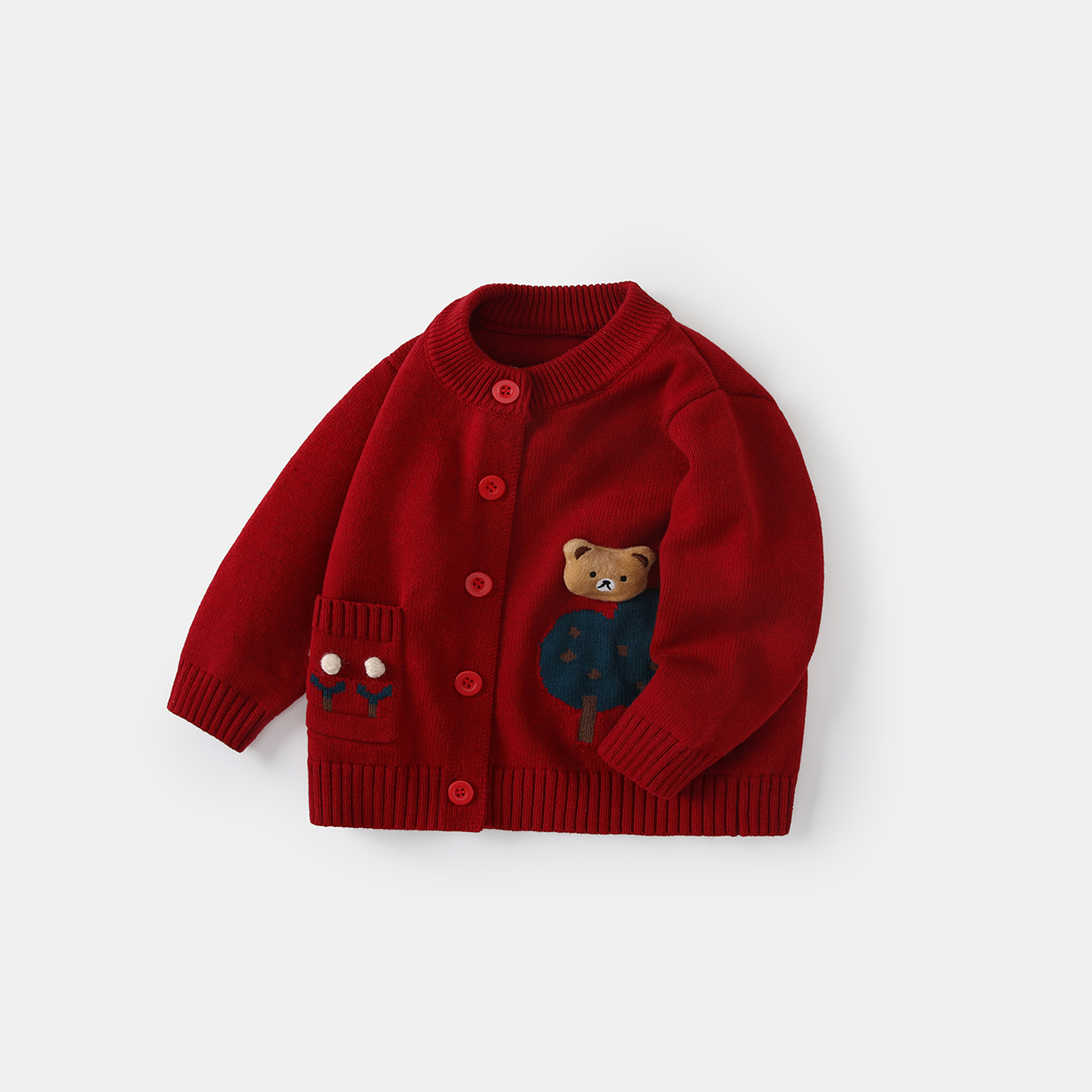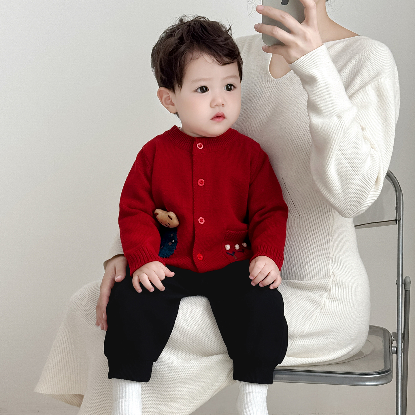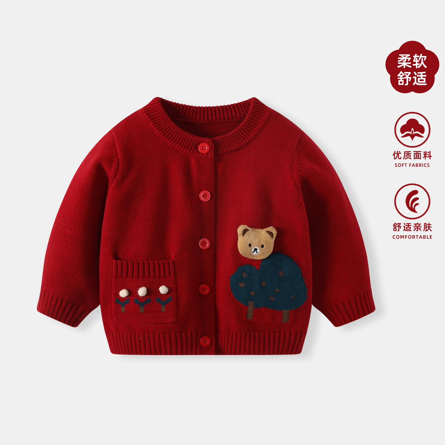 衣服 冬装 婴儿秋冬毛衣2025新款 男宝宝红色加绒加厚外套男童针织衫