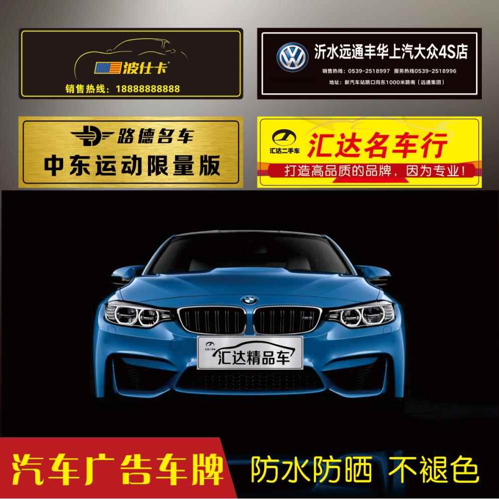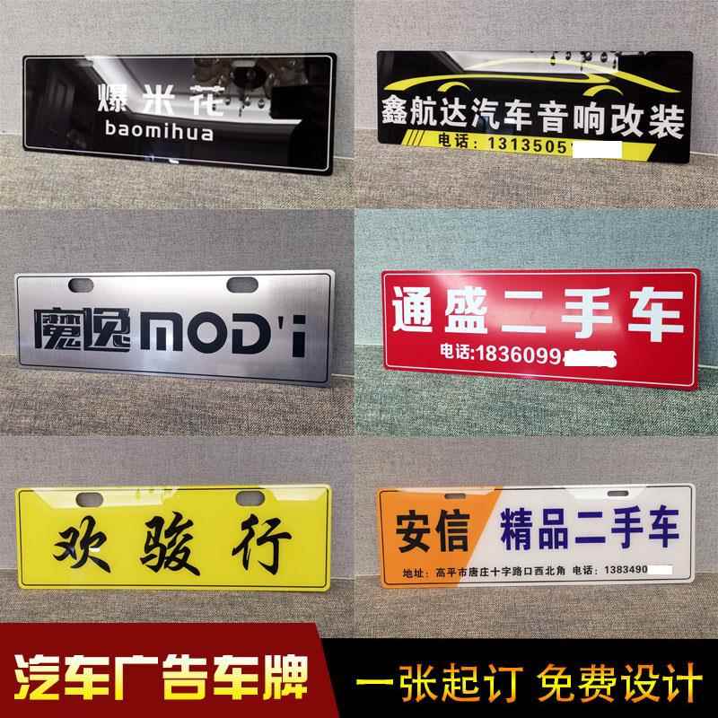 定制亚克力汽车广告牌 车行铝合金车牌做 双色板拉丝塑料反光车牌