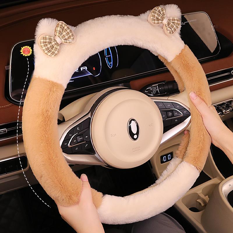 汽车方向盘套冬季 比亚迪奔驰奥迪大众 毛绒可爱防滑保暖车把套女款