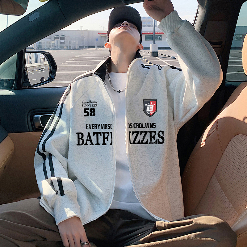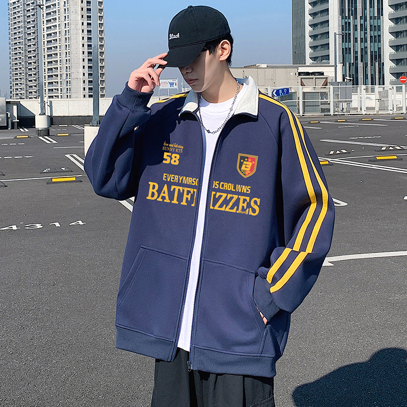 翻领男生藏青色外套 美式 CHINISM赤尘 幸运之符POLO领卫衣男新款