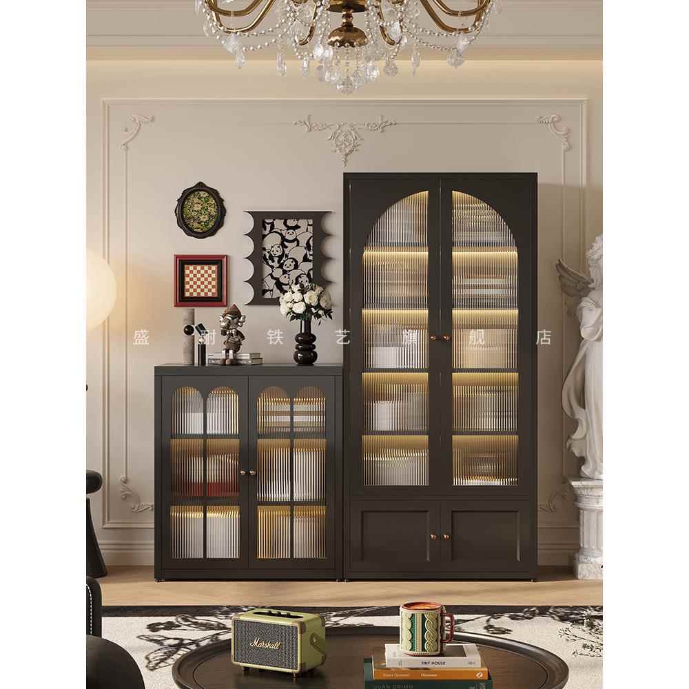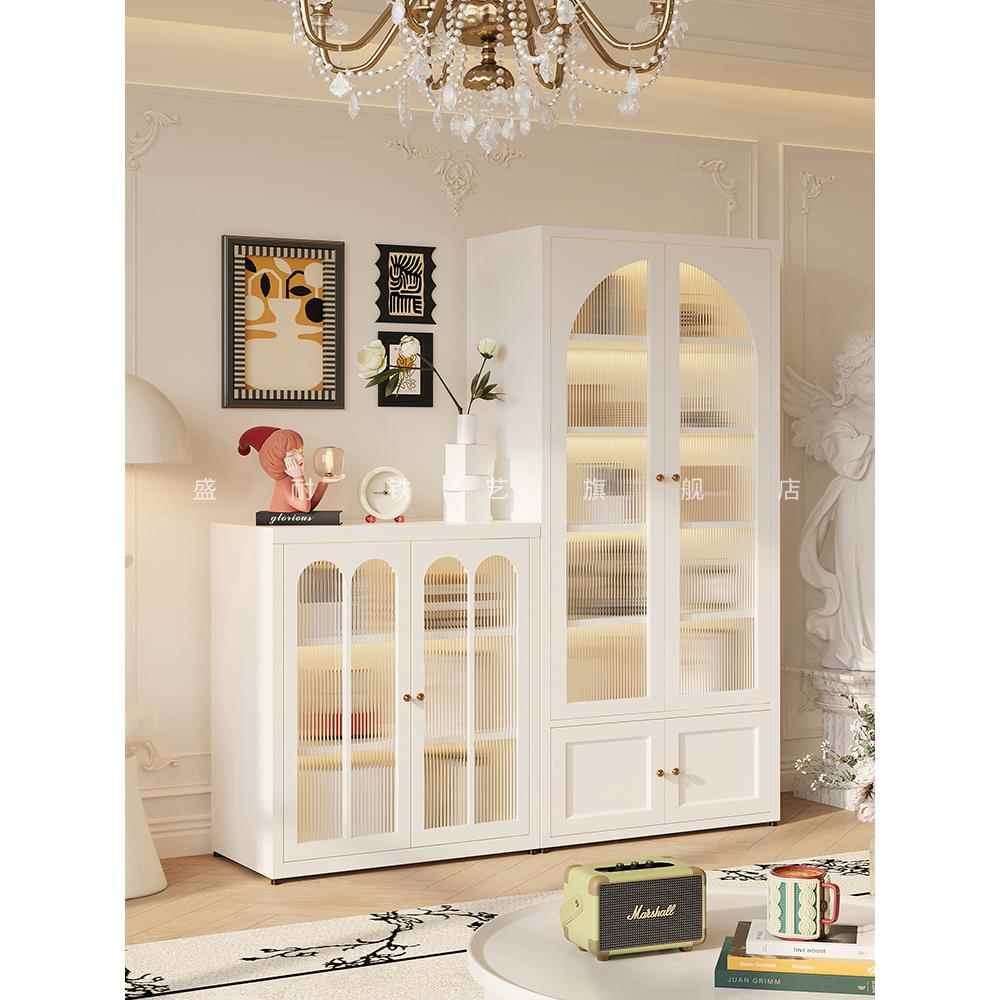 盛耐法式 奶油风书柜现代家用客厅玻璃带门防尘展示柜儿童书房书架