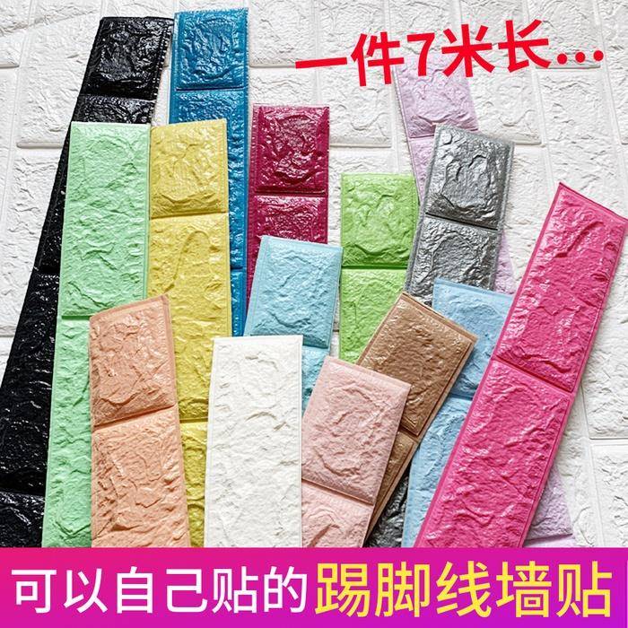 踢脚线墙纸自粘pvc防水腰线 客厅墙角壁纸卧室地脚线 3D楼梯墙贴