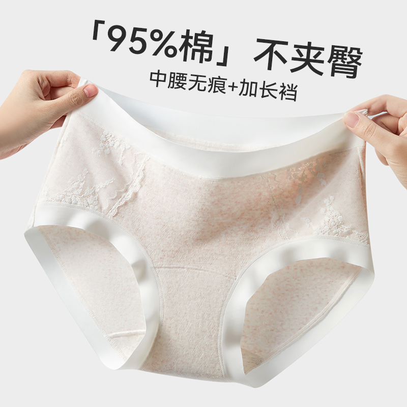 头 纯棉10A抗菌全棉裆无痕透气蕾丝三角短裤 猫人内裤 女士2025新款