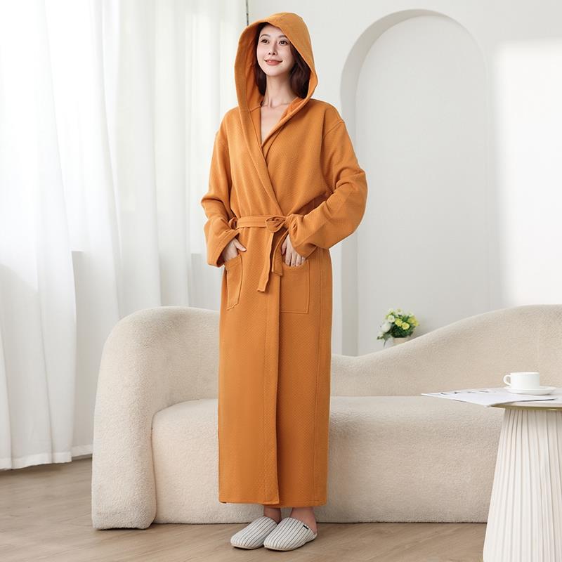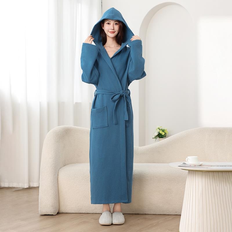 男士 秋冬浴袍女款 加长款 通用连帽紫色睡衣秋款 睡袍1009c 四季