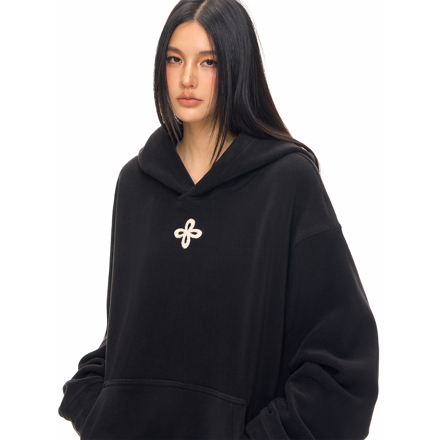 CLIMAX VISION保暖亲肤双面摇粒绒四叶花毛巾绣连帽卫衣情侣帽衫