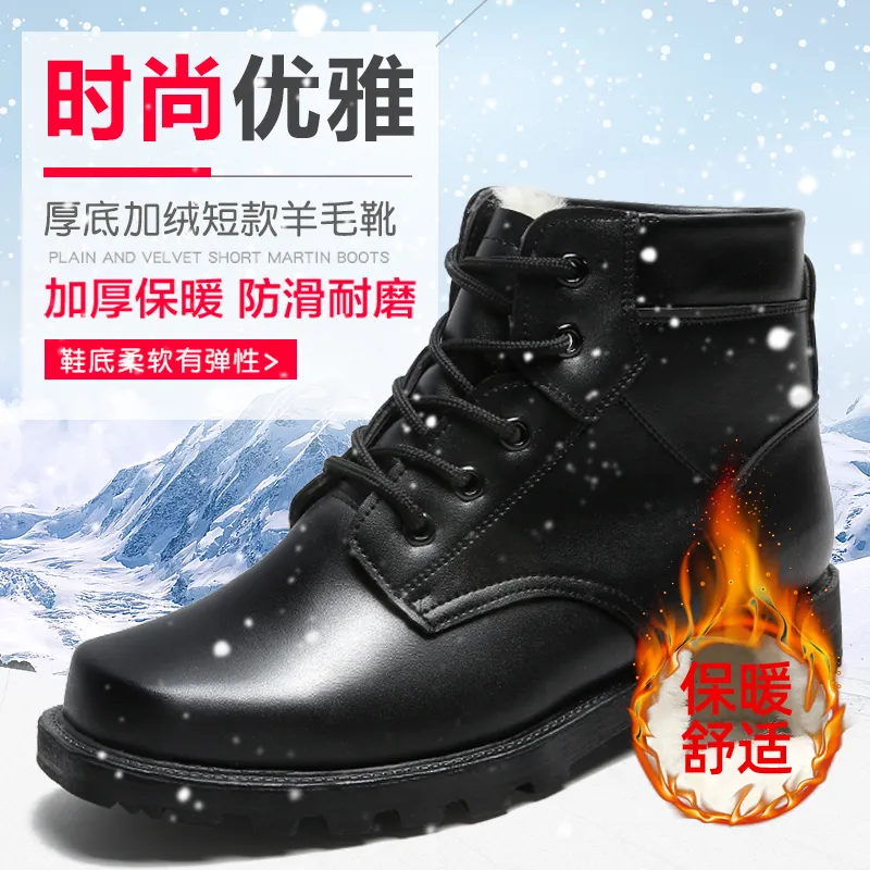 仿真皮高帮皮靴老人鞋 皮毛一体羊毛雪地靴保暖爸爸鞋 加绒 新款 冬季