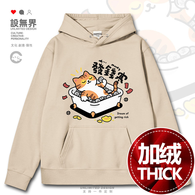 广东话粤语文化发钱寒猫咪趣味文字连帽卫衣男女帽衫 无界 0017设