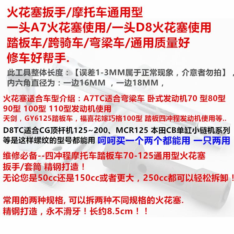 摩托车火花塞套筒扳手拆装 D8TC通用 火花塞维修工具两头双用A7TC