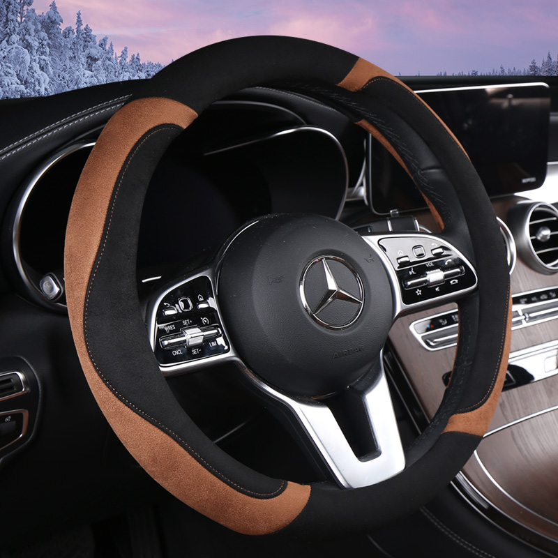 汽车方向盘套超薄D型防滑麂皮绒把套翻毛皮反毛车把套四季 通用型