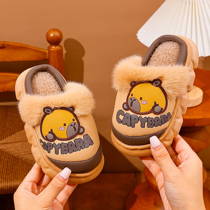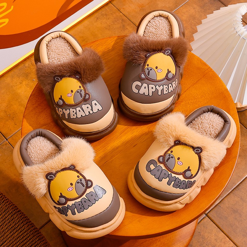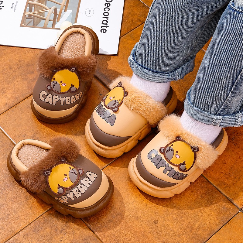 男童EVA室内皮面防水中大童小孩宝宝棉鞋 卡皮巴拉儿童棉拖鞋 冬季