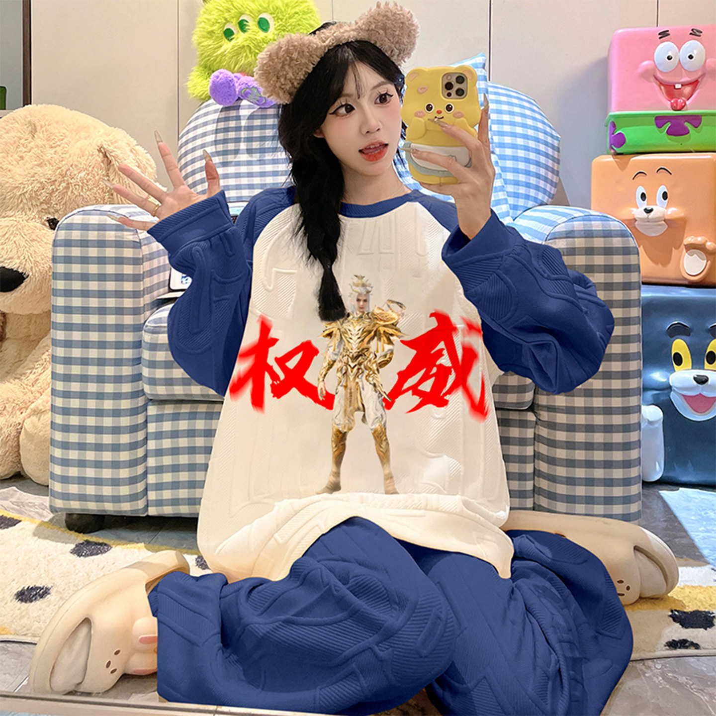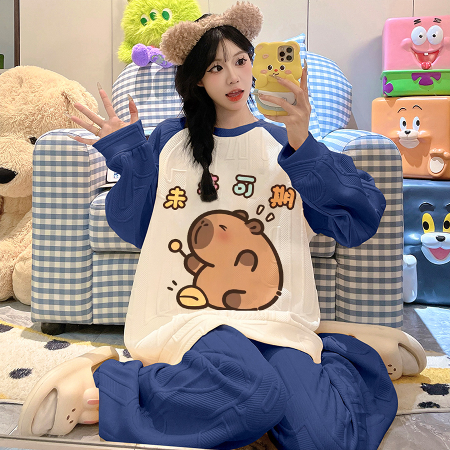 加厚夹层棉家居服套装 秋冬款 2025新款 冬季 卡皮巴拉空气棉睡衣女款