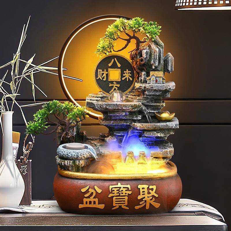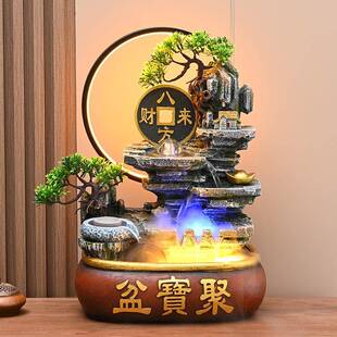 办公室聚宝盆流水摆件循环水假山喷泉生财桌面风水轮乔迁新居礼物