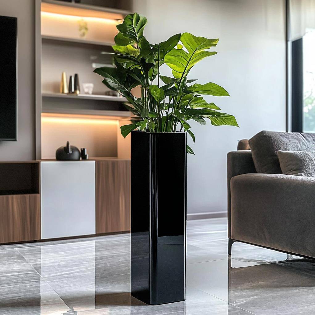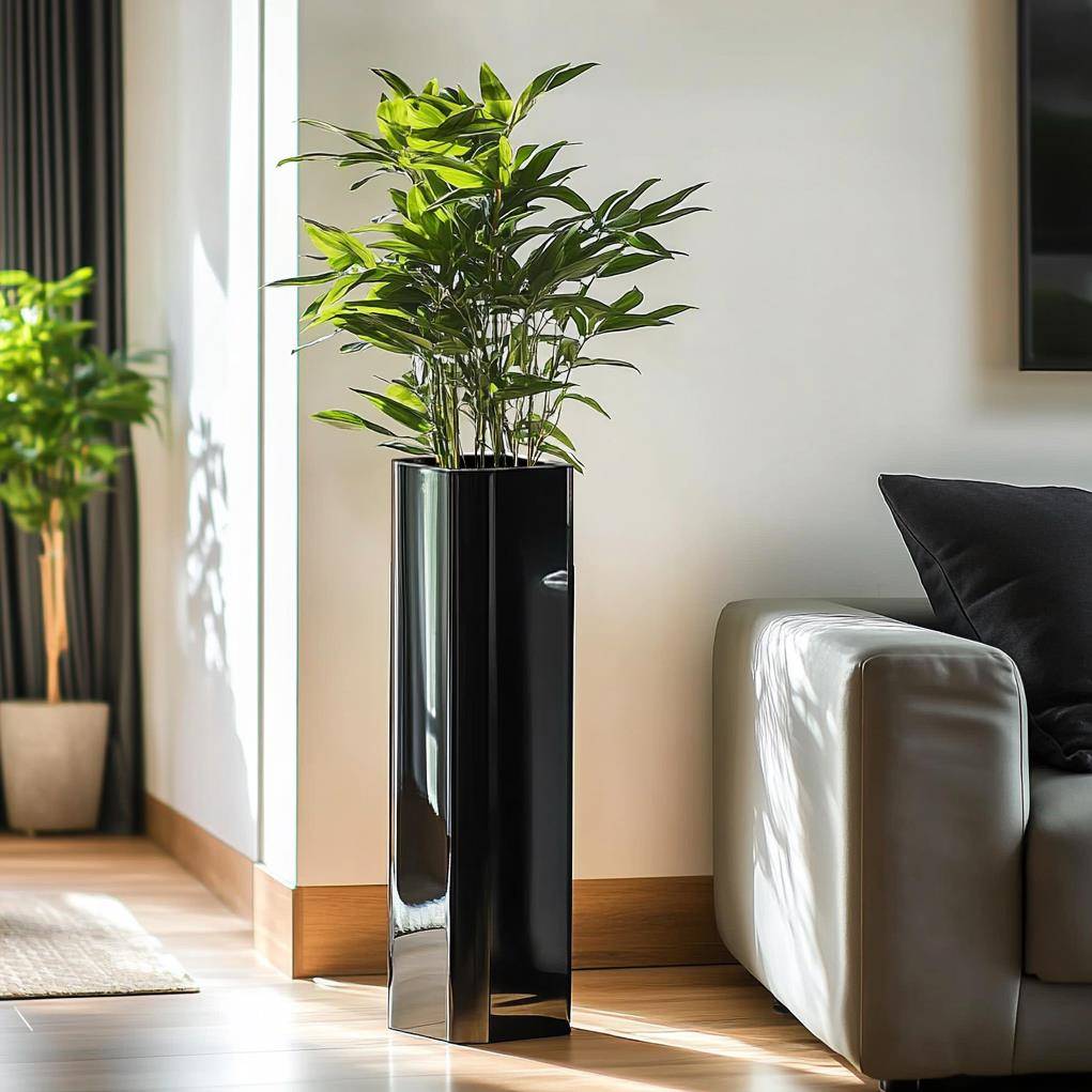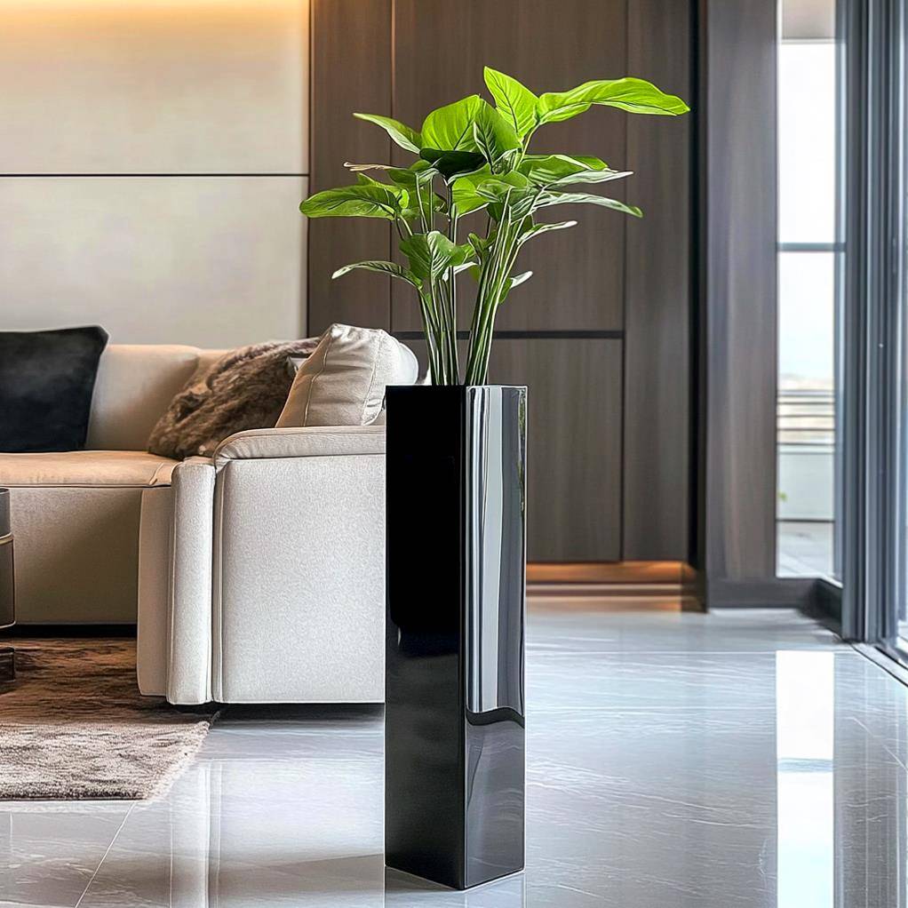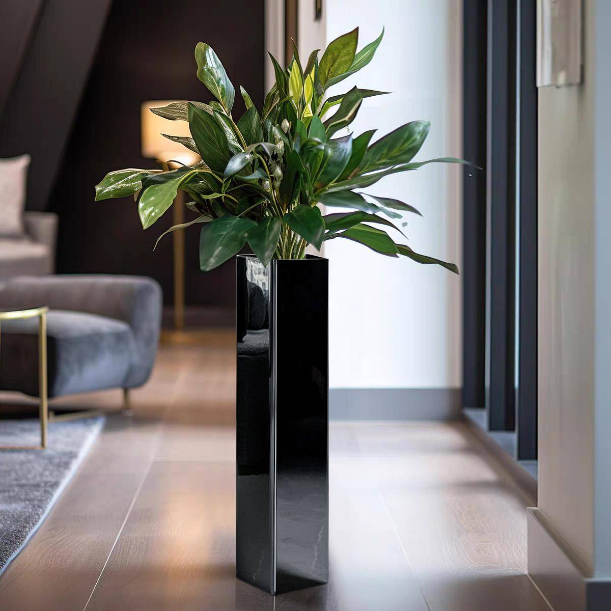 黑色高级感大号落地花瓶玻璃透明吊钟马醉木高款 插花长枝客厅摆件