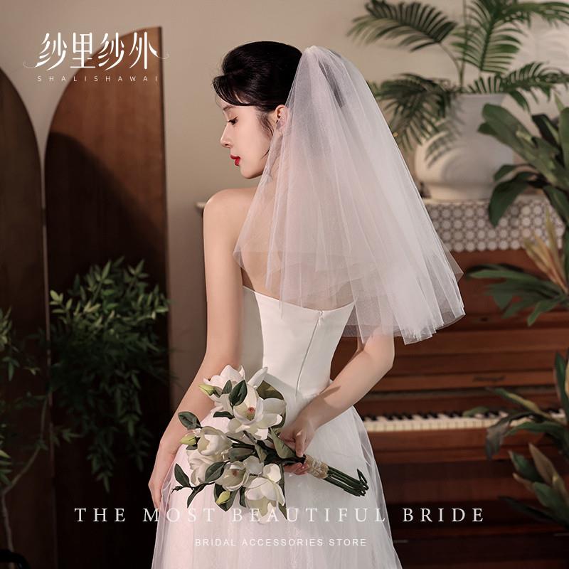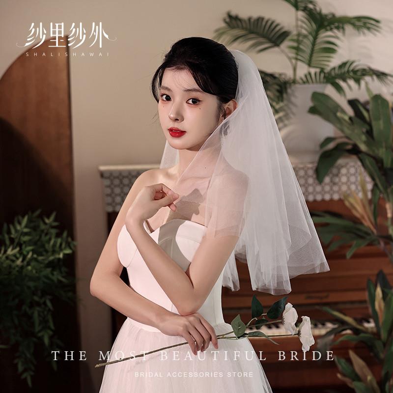 好货头纱领证新娘结婚登记头饰法式 简约旅拍写真求婚 超仙森系短款