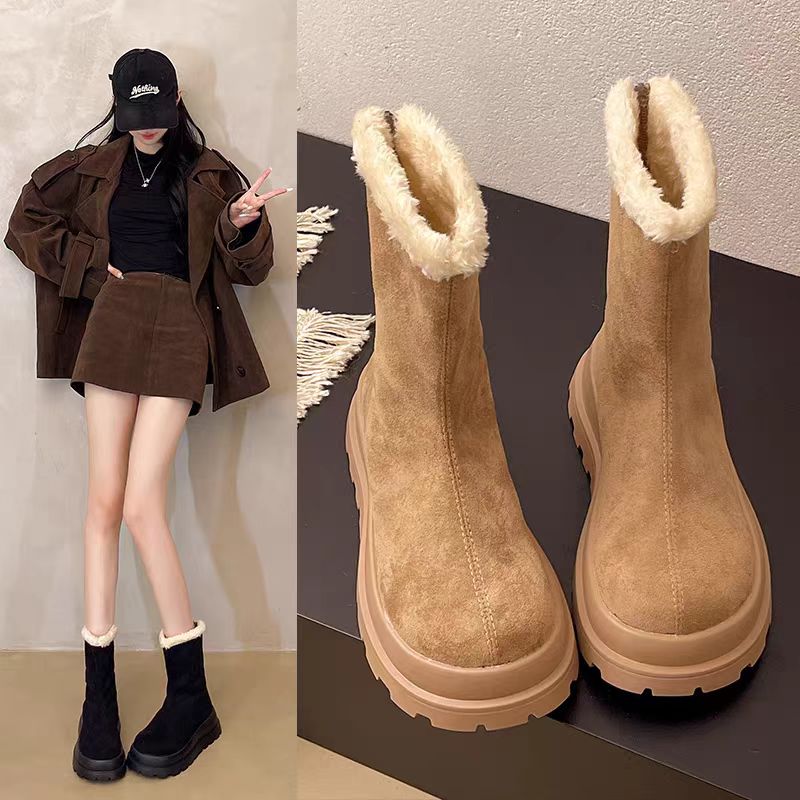 加绒毛毛棉鞋 冬季 两穿勃肯短靴42 41到43厚底雪地靴女2025新款 大码