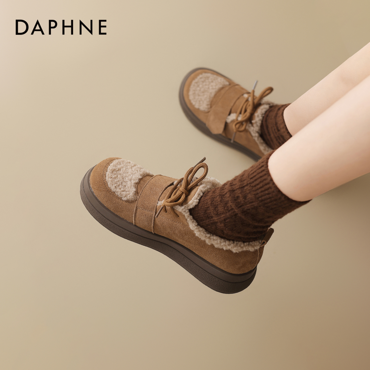 毛毛鞋 秋冬保暖厚底雪地靴休闲舒适女鞋 女2025新款 达芙妮加绒棉鞋