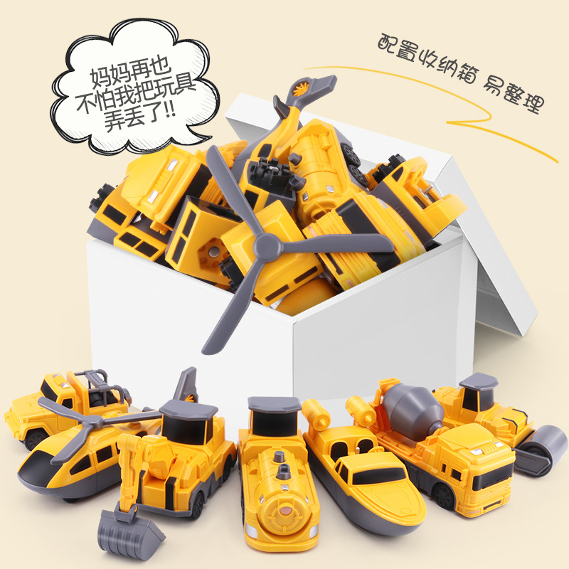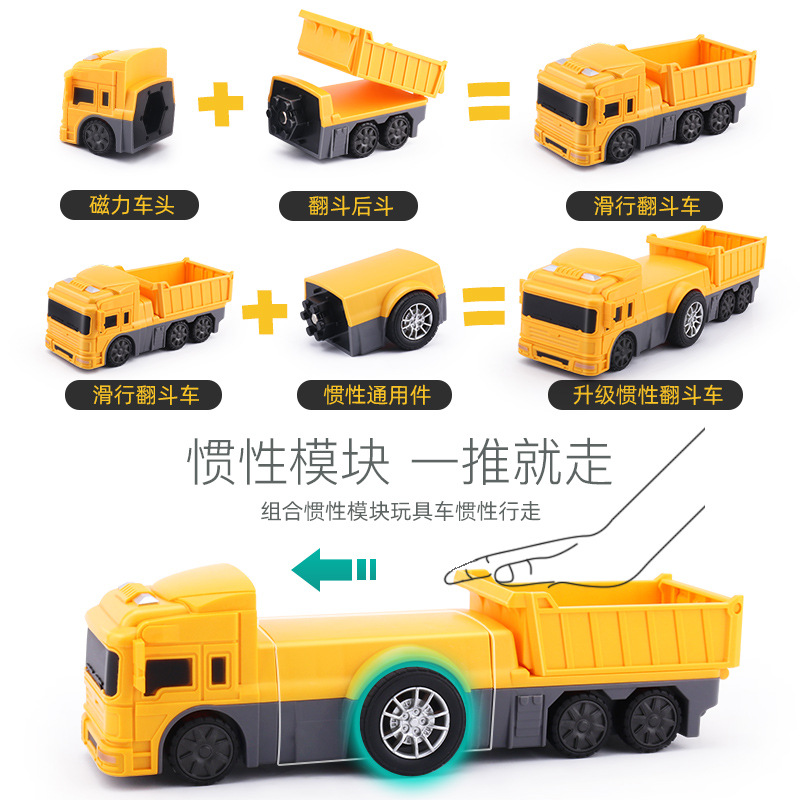 磁力变形工程车早教收纳桶百变DIY拼装 积木儿童玩具益智磁铁套装
