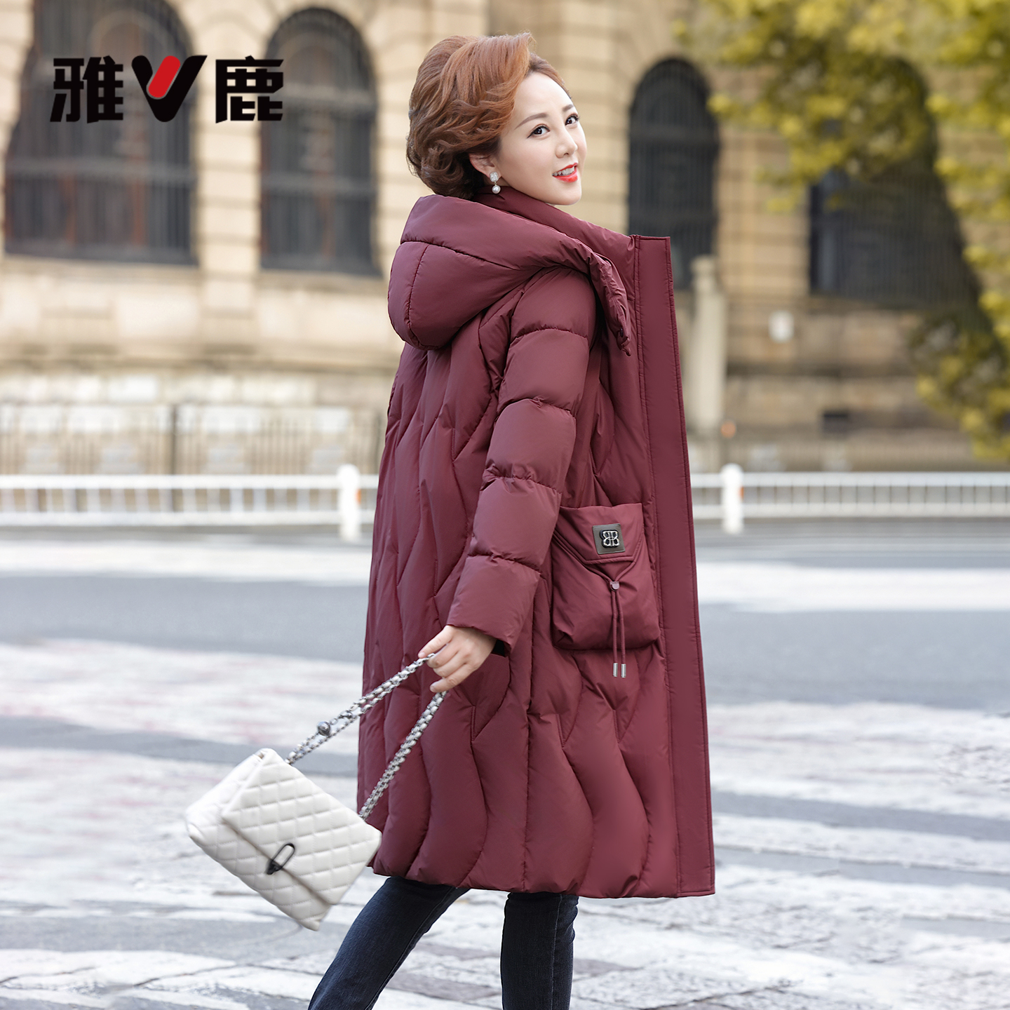 新款 妈妈冬季 2025中老年连帽休闲防风保暖外套 羽绒服女款 雅鹿长款