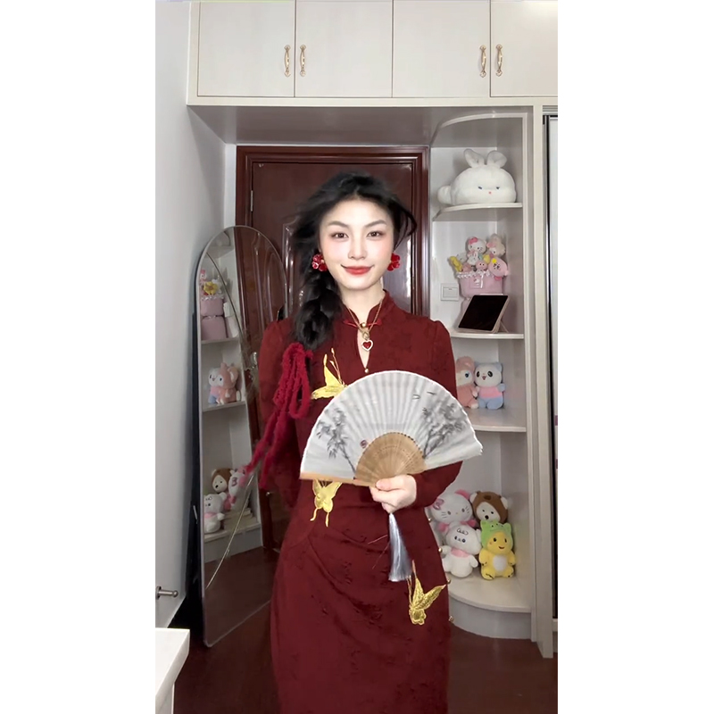 年轻款 绝美旗袍2025新款 气质高端连衣裙 复古国风倒大袖 红色新中式