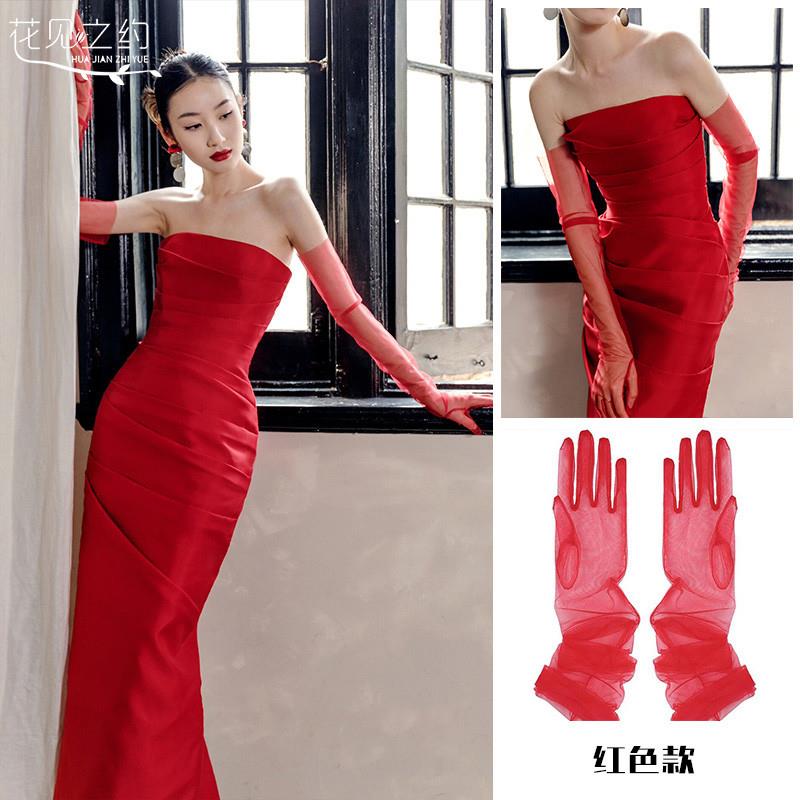好货红色网纱手套复古蕾丝生日写真拍照袖 套新娘婚纱礼服配饰白色
