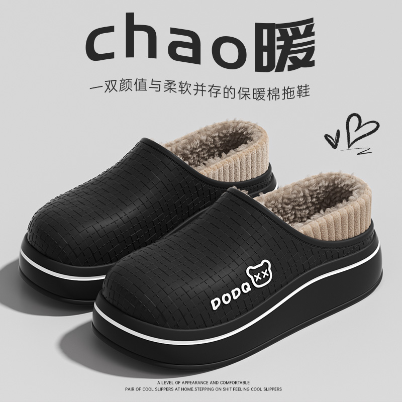 加绒毛毛绒棉鞋 防水棉拖鞋 室内家居保暖月子鞋 秋冬季 男 女2025新款