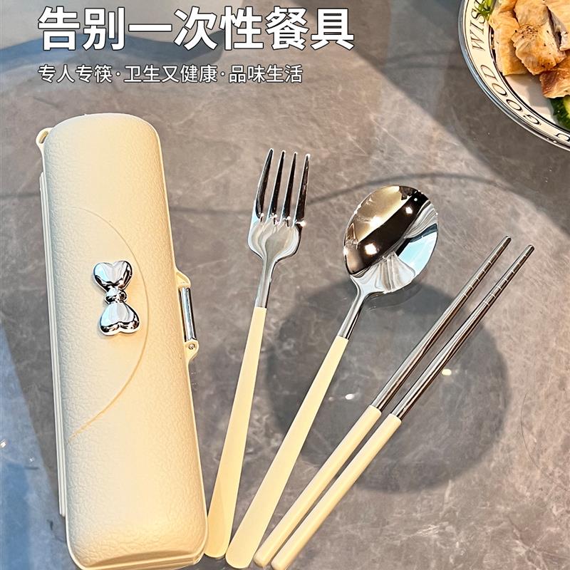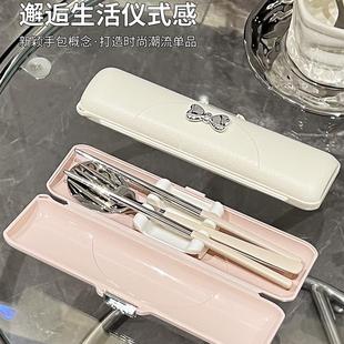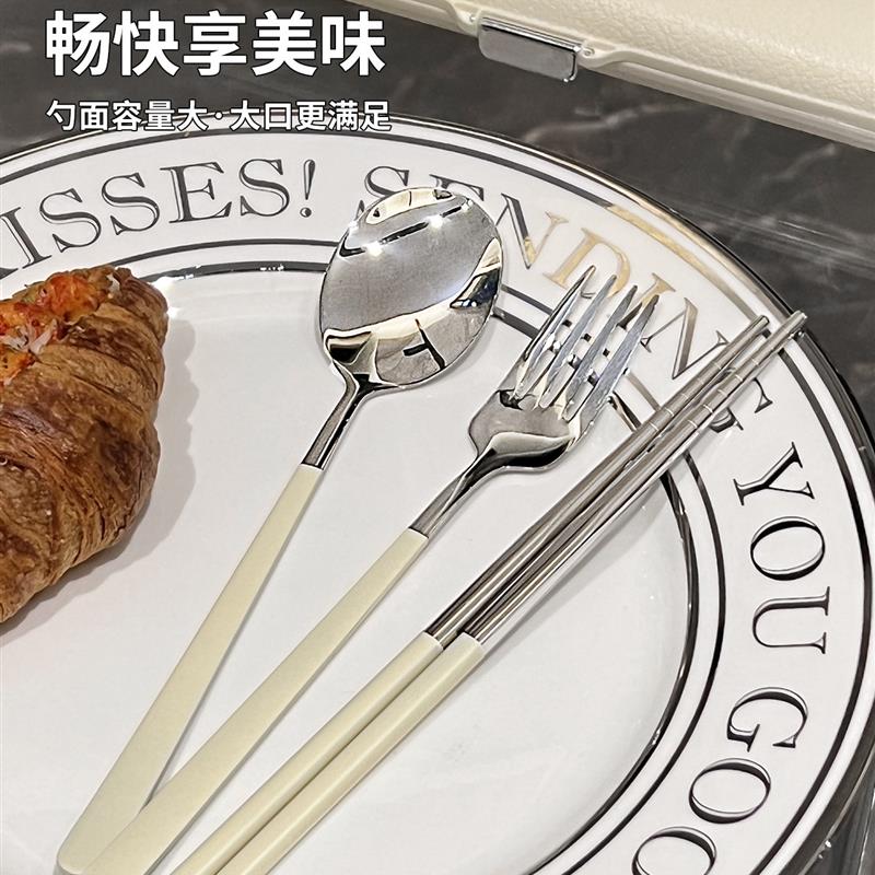 德国高颜值筷子勺子套装 学生一人用专用 304不餐具便携锈钢单人装