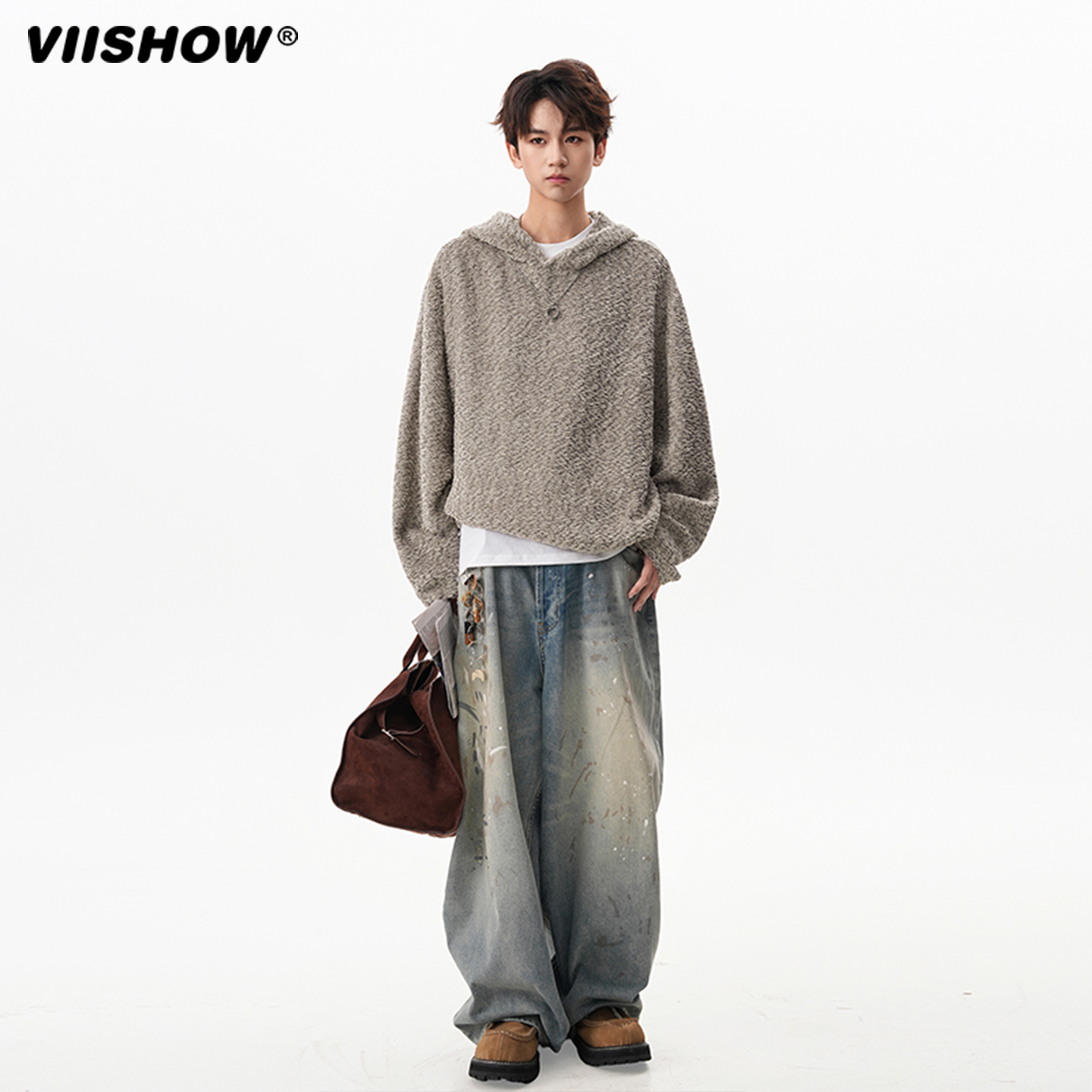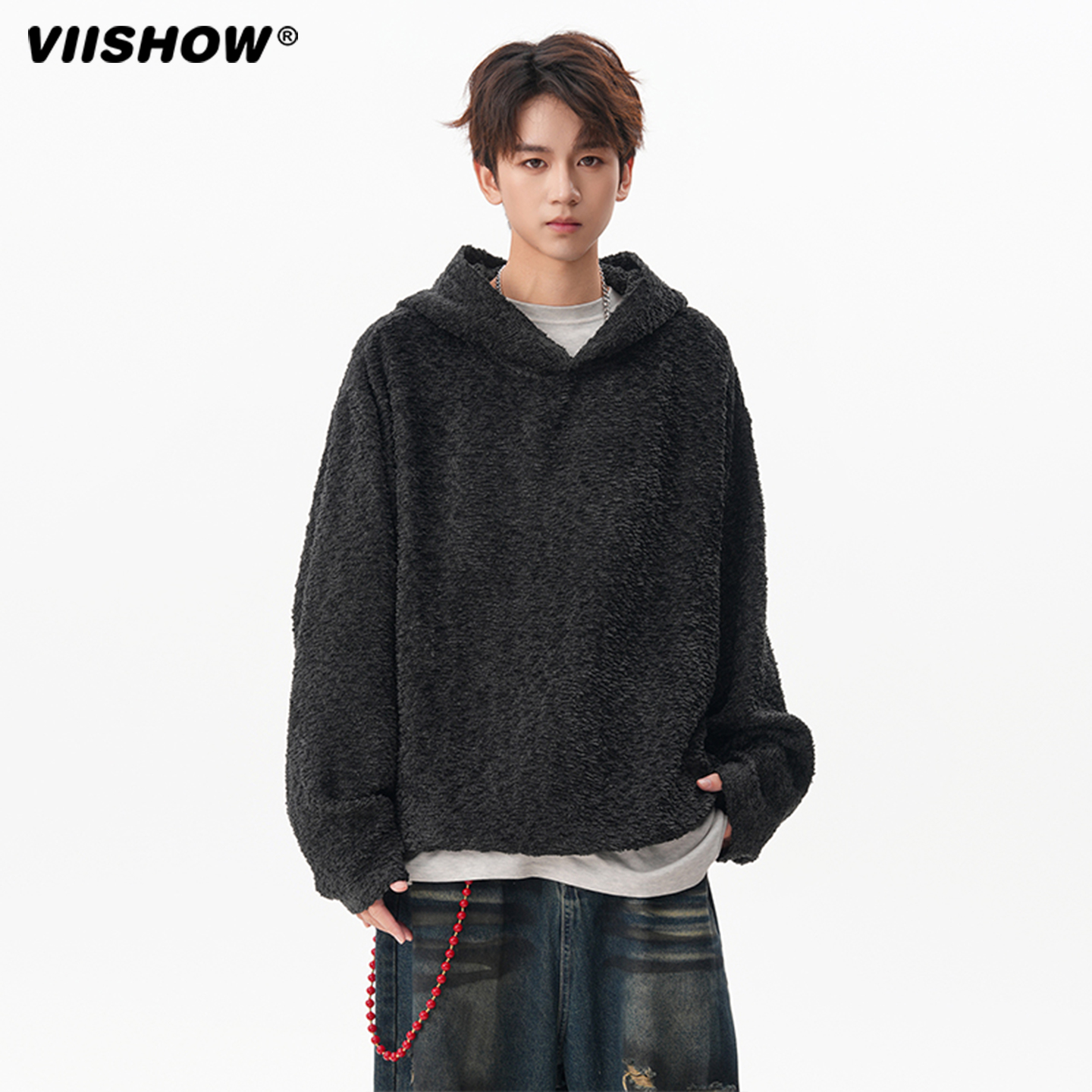 情侣休闲套头帽衫 VIISHOW美式 复古cleanfit肌理感连帽卫衣男秋季