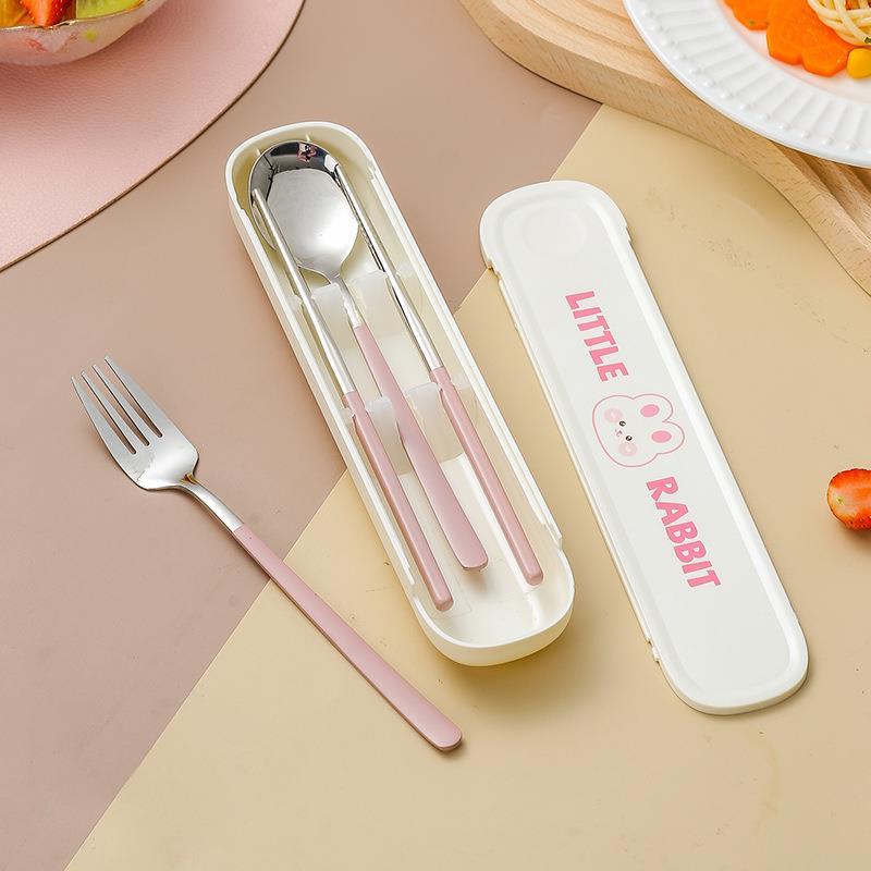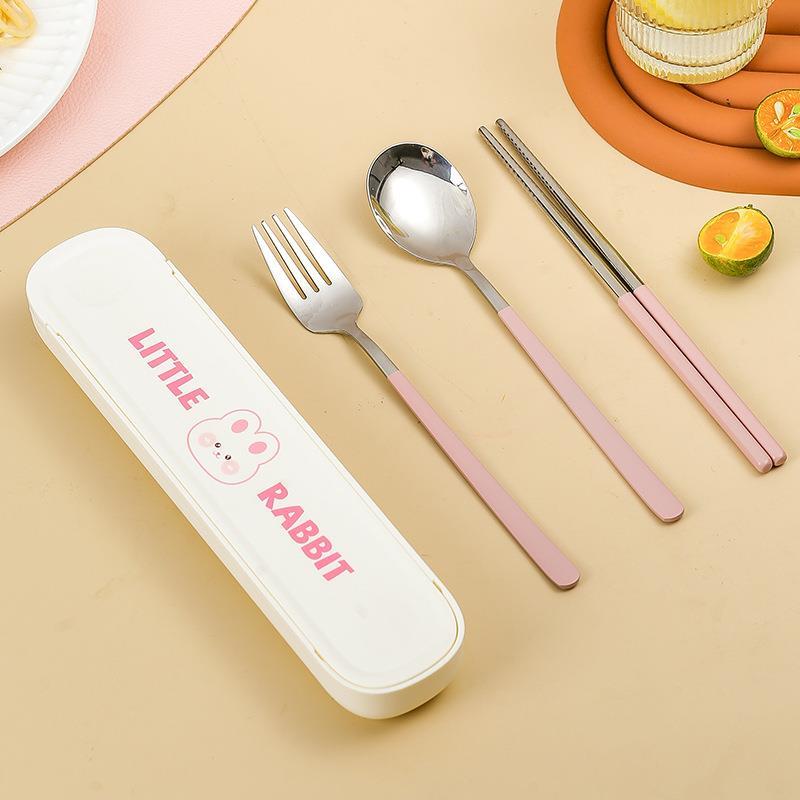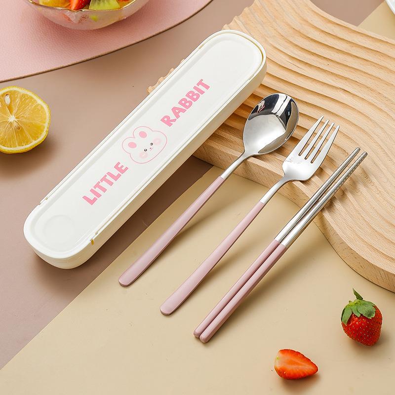 304不锈钢筷子勺子套装 旅行餐具三件套 学生便携餐具叉勺筷套装