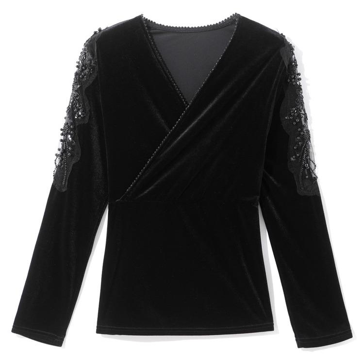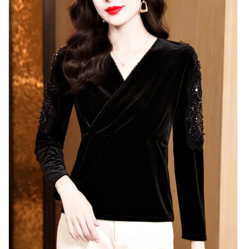洋气内搭小1010z 黑色显瘦打底衫 秋冬金丝绒V领长袖 T恤女2025新款