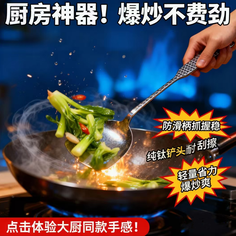 纯钛锅铲家用铲子炒锅专用全钛铲子炒菜锅烹饪厨具纯钛铲子