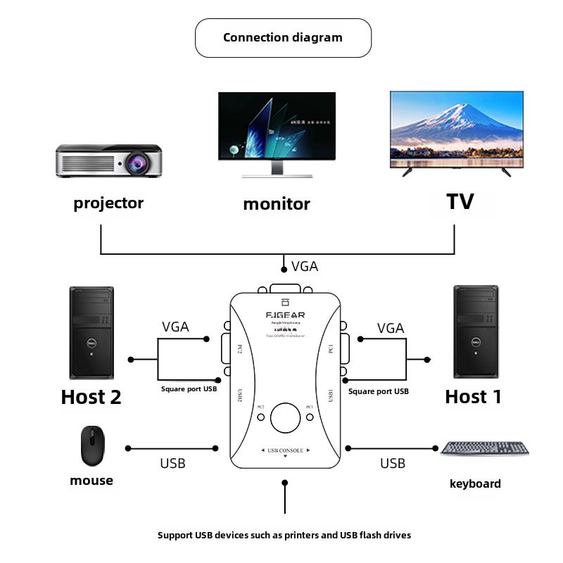 USB切换器2口 USB键盘鼠标KVM切换器 监控电脑屏幕共享器二进一出