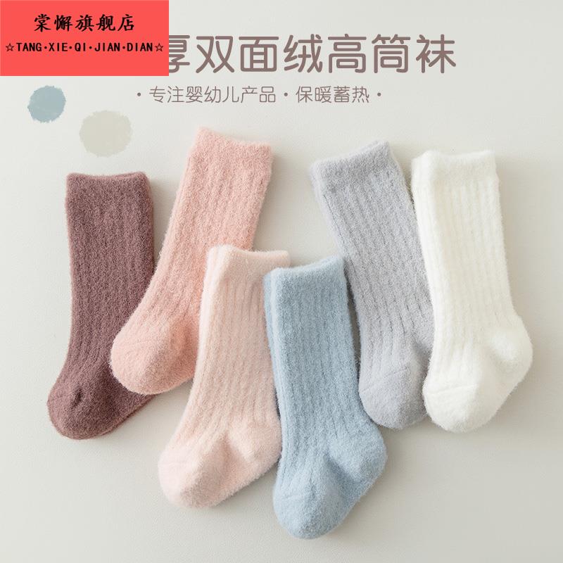 婴儿袜子秋冬季 3个月新生儿松口保暖中筒袜 加绒加厚宝宝小腿袜0