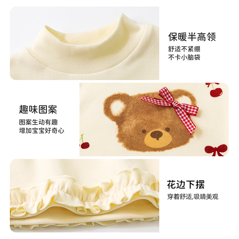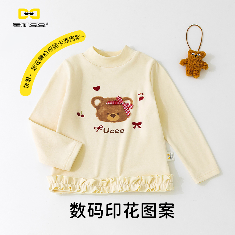 卡通印花7A抗菌花边保暖上衣 T恤长袖 唐机豆豆2025冬款 女童打底衫