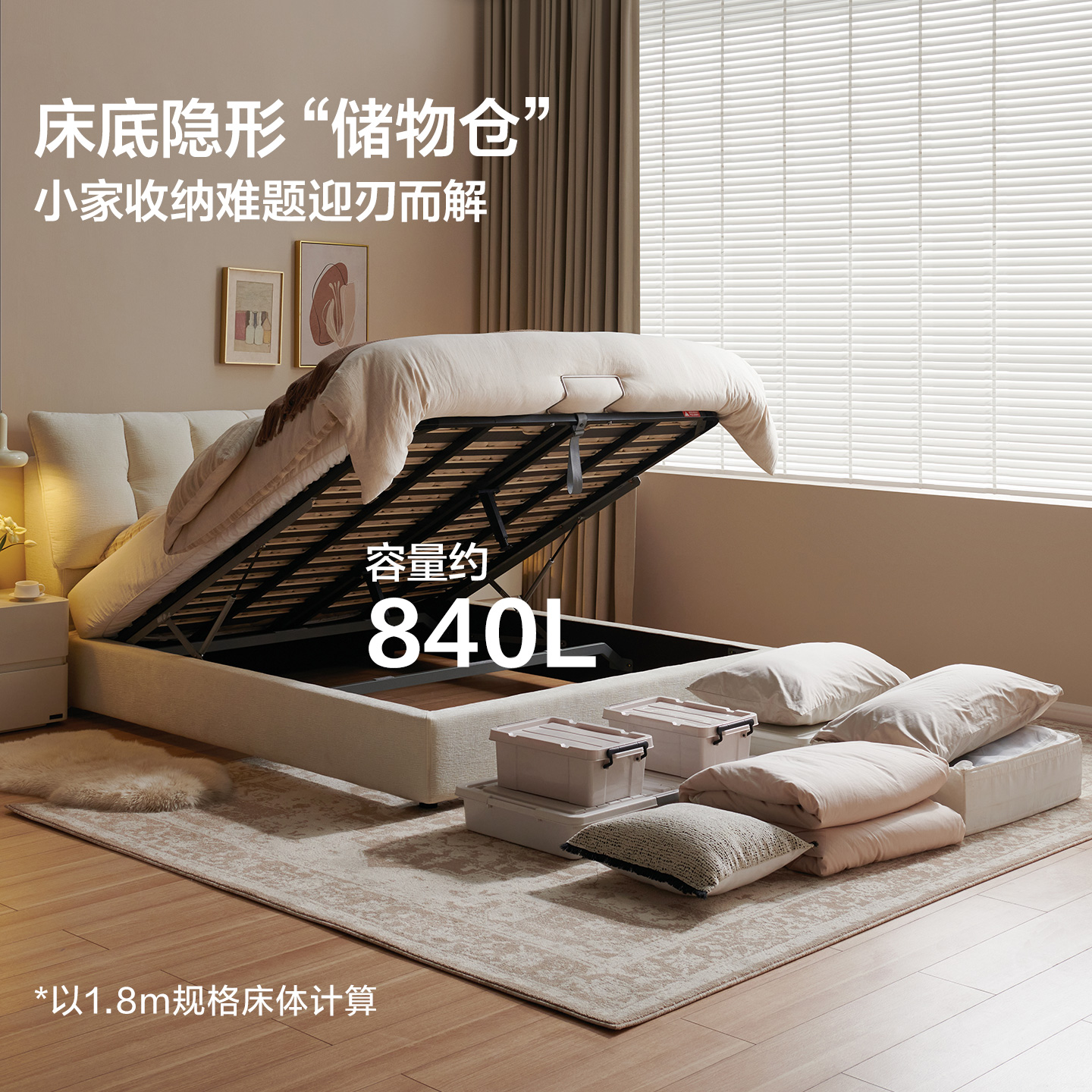 全友家居2025新款 1.5m单人雪尼尔布艺床主卧室1米8双人储物大床